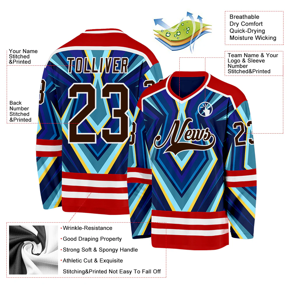 Custom Red Brown Blue Yellow-White 3D Pattern Cyber Mecha E-sport Hockey Jersey