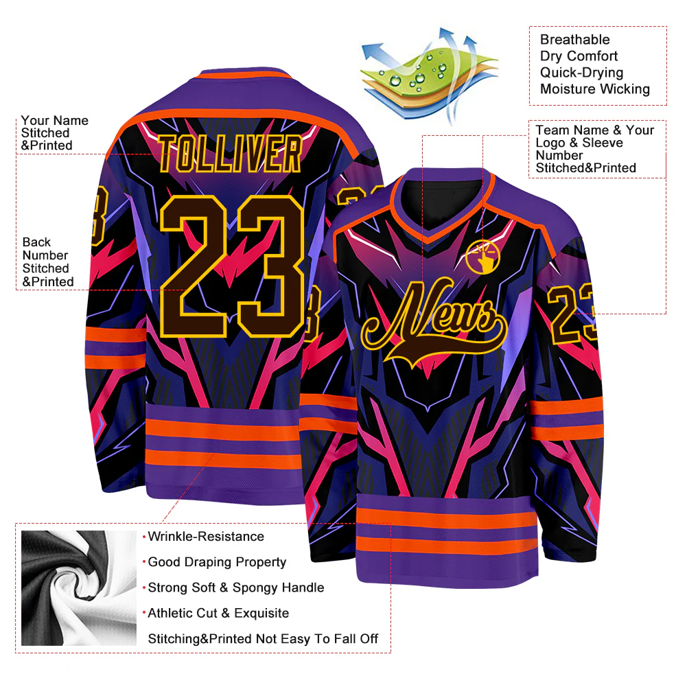 Custom Purple Brown Orange Black-Yellow 3D Pattern Cyber Mecha E-sport Hockey Jersey