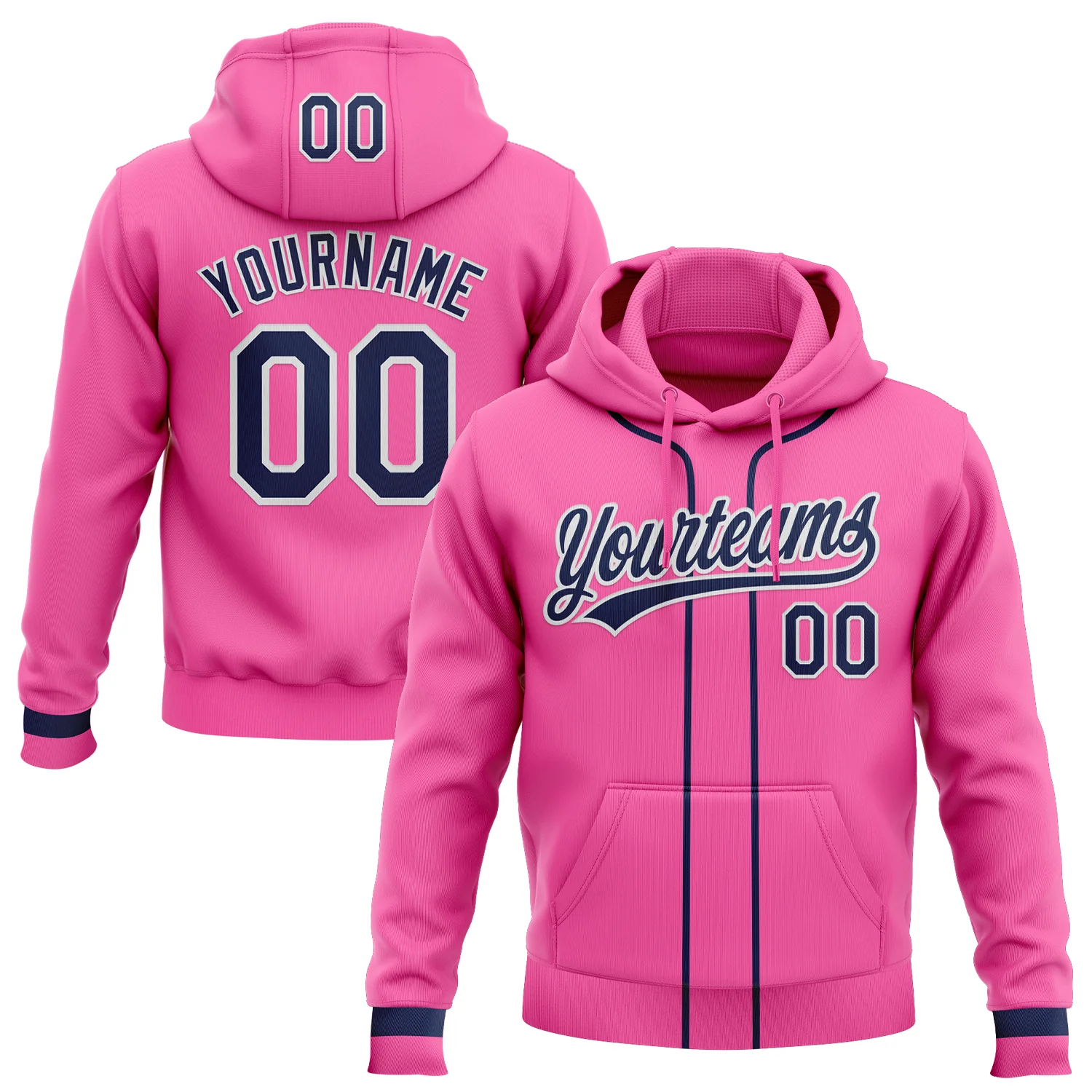 Custom Stitched Pink Navy-White Baseball Pullover Sweatshirt Hoodie
