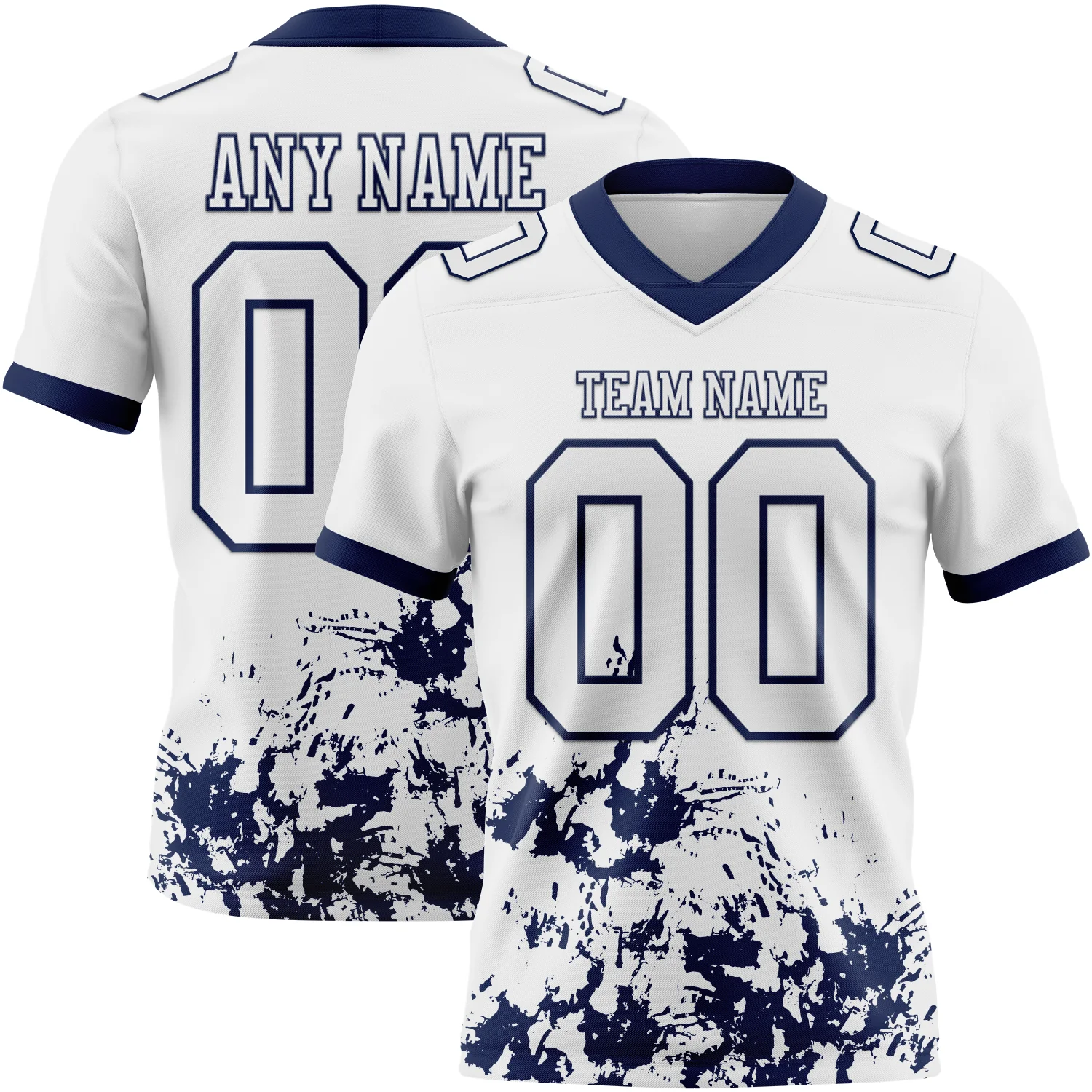 Custom White Navy 3D Pattern Splash Authentic Football Jersey