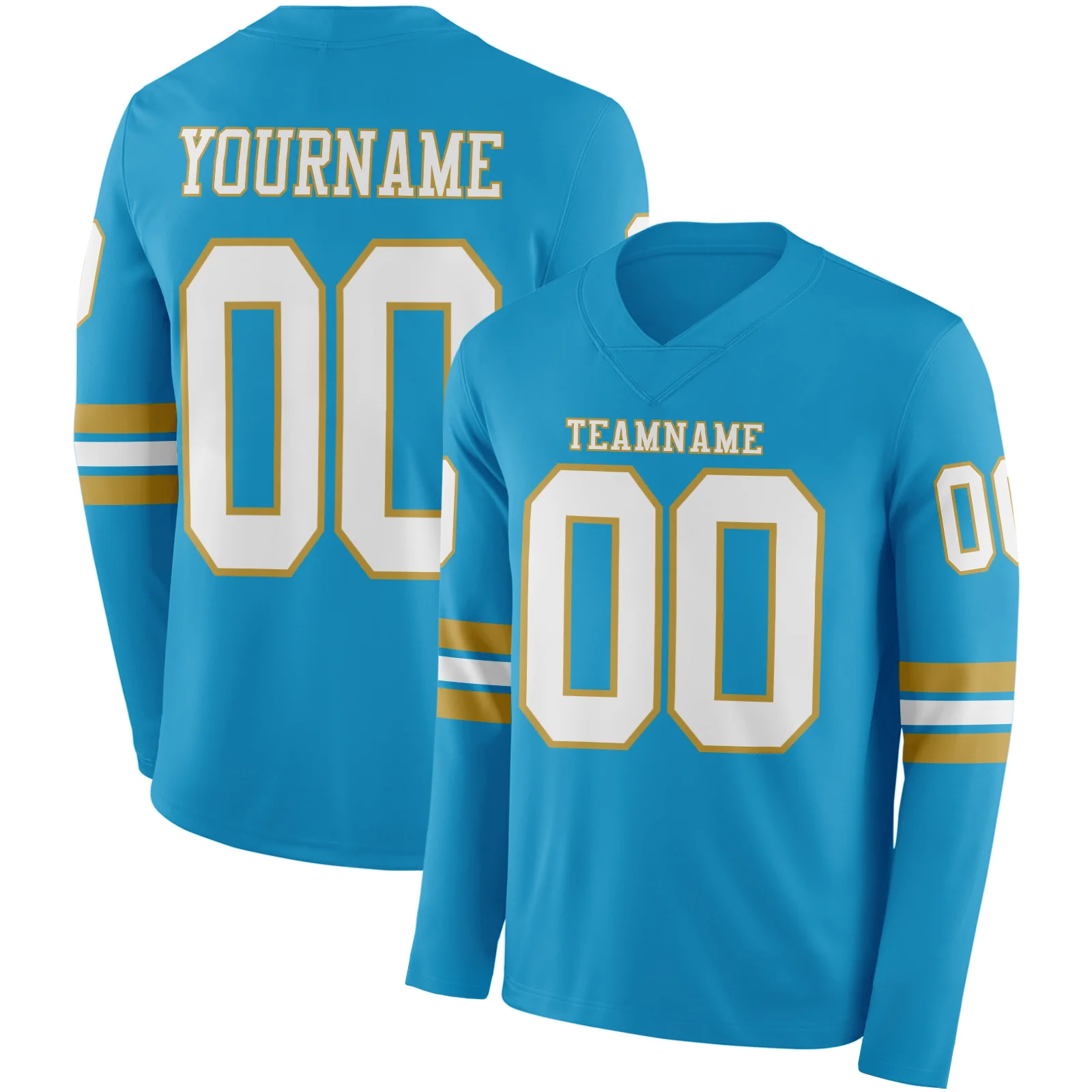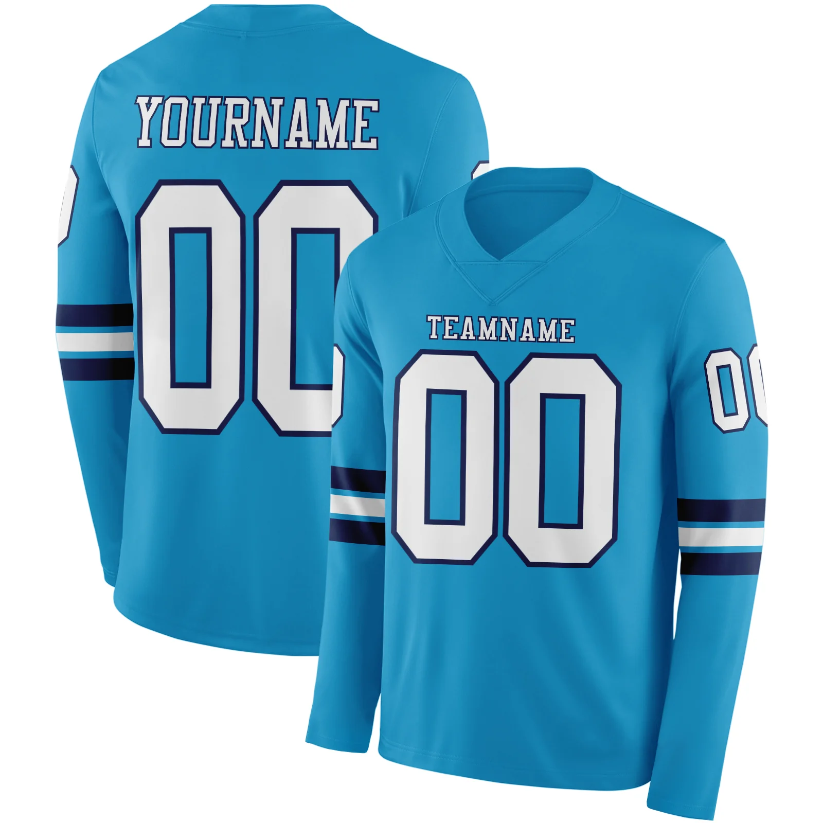 Custom Panther Blue White Long Sleeve Authentic Football Jersey