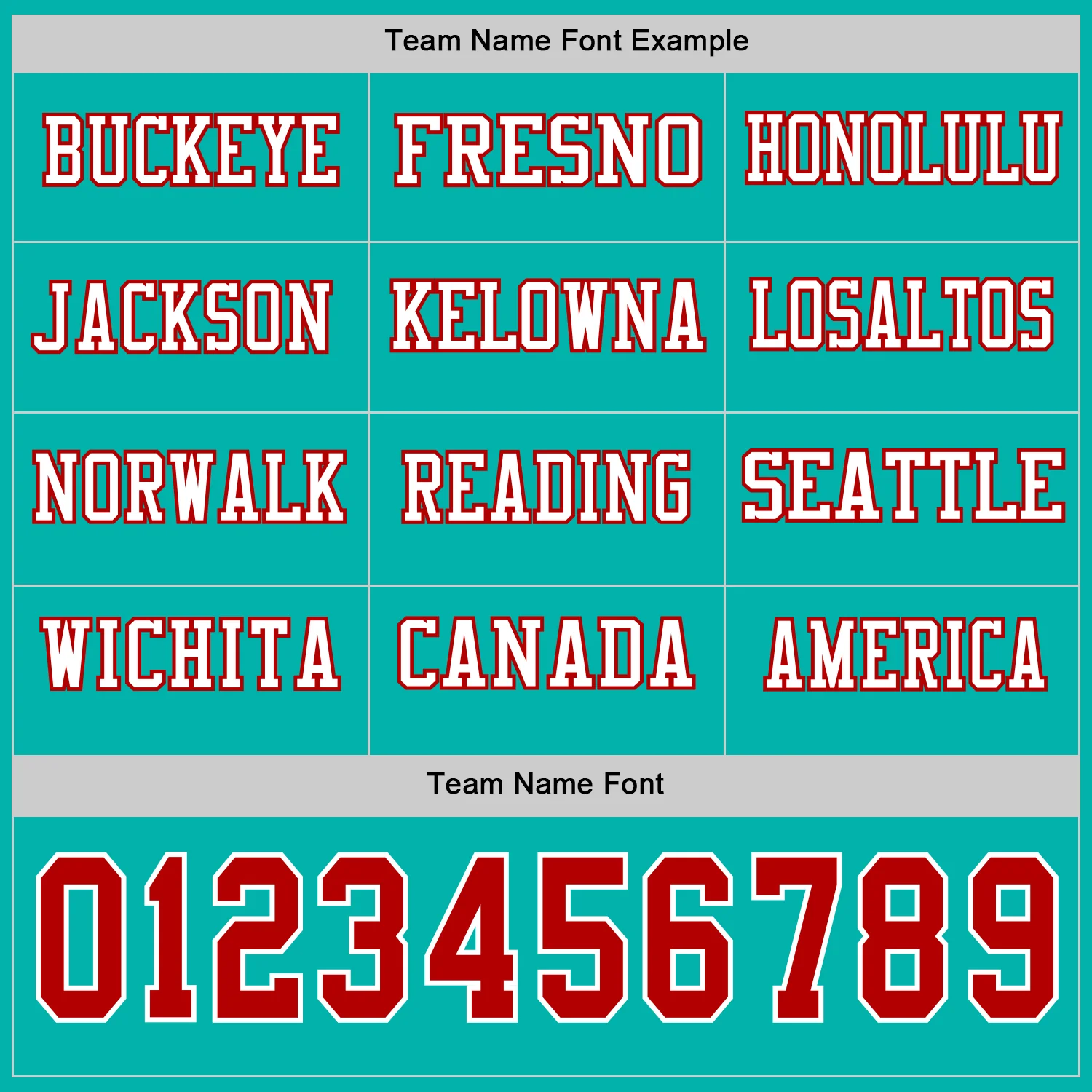 Custom Aqua Red-White Long Sleeve Authentic Football Jersey