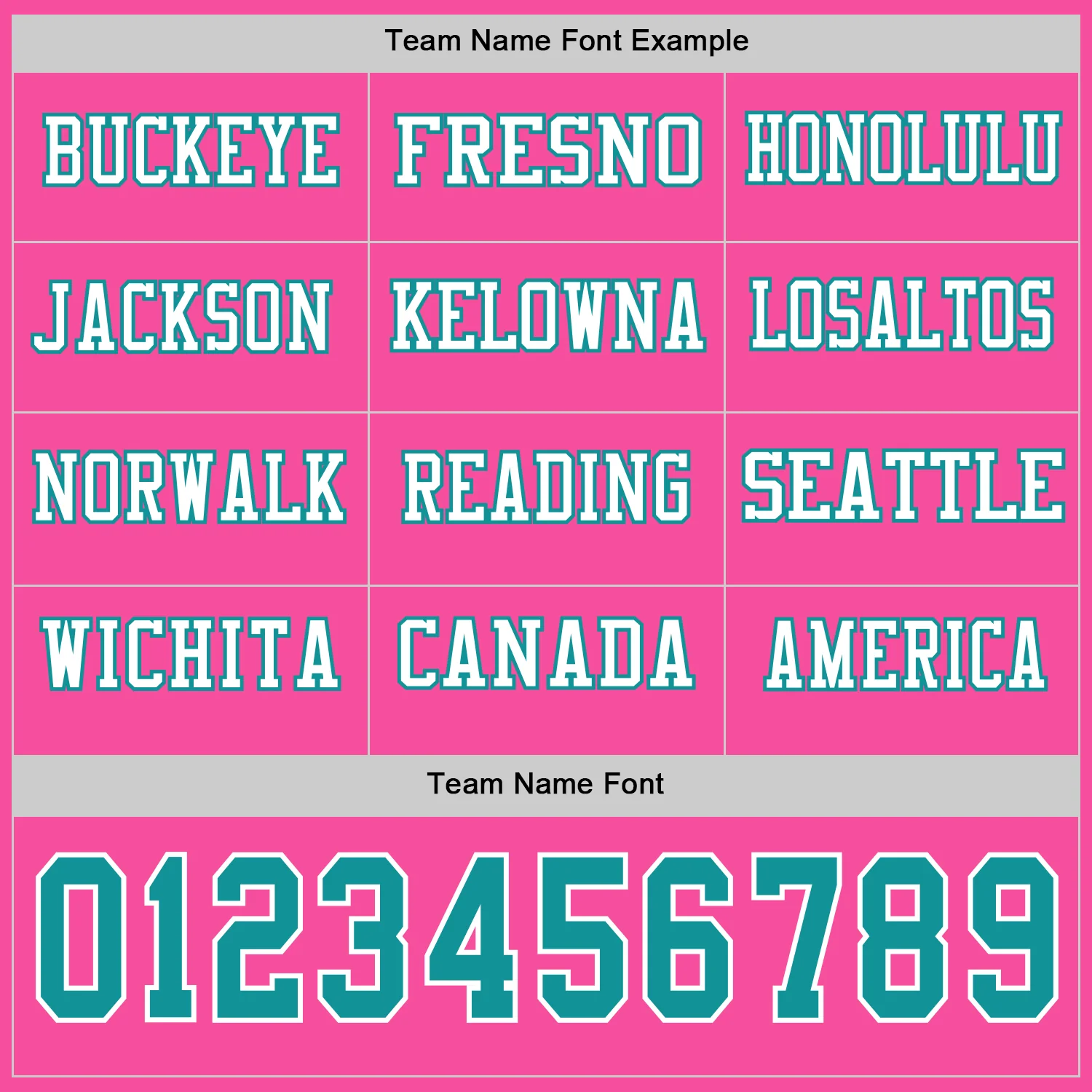 Custom Pink White-Teal Long Sleeve Authentic Football Jersey