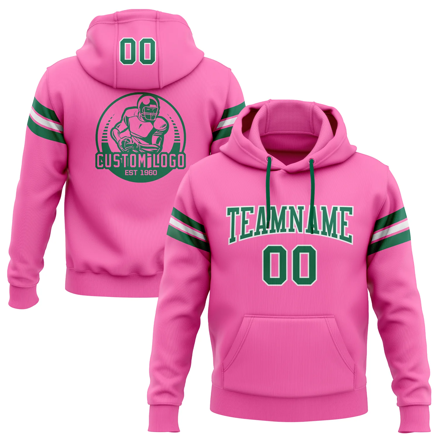 Custom Stitched Pink Kelly Green-White Football Pullover Sweatshirt Hoodie