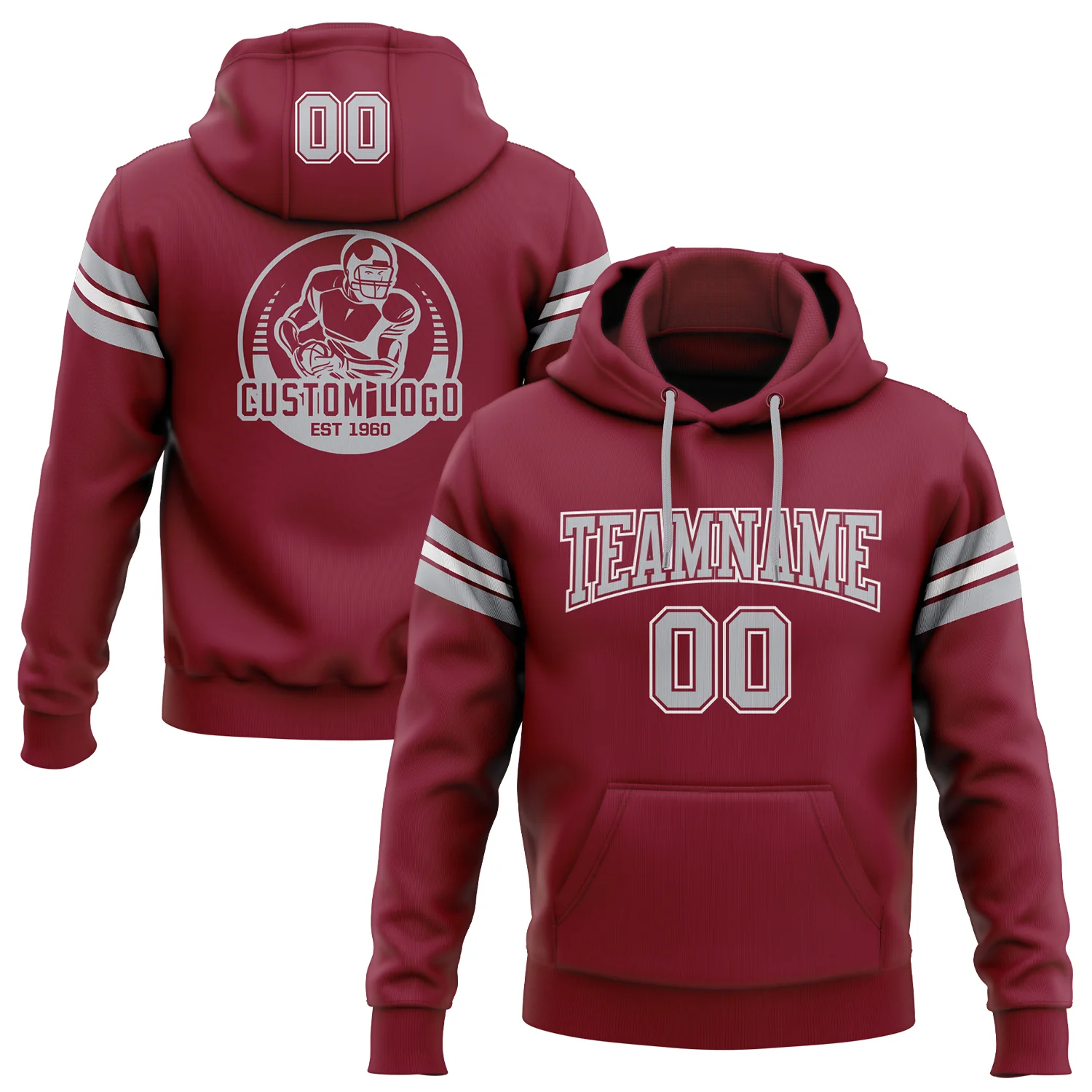 Custom Stitched Crimson Gray-White Football Pullover Sweatshirt Hoodie