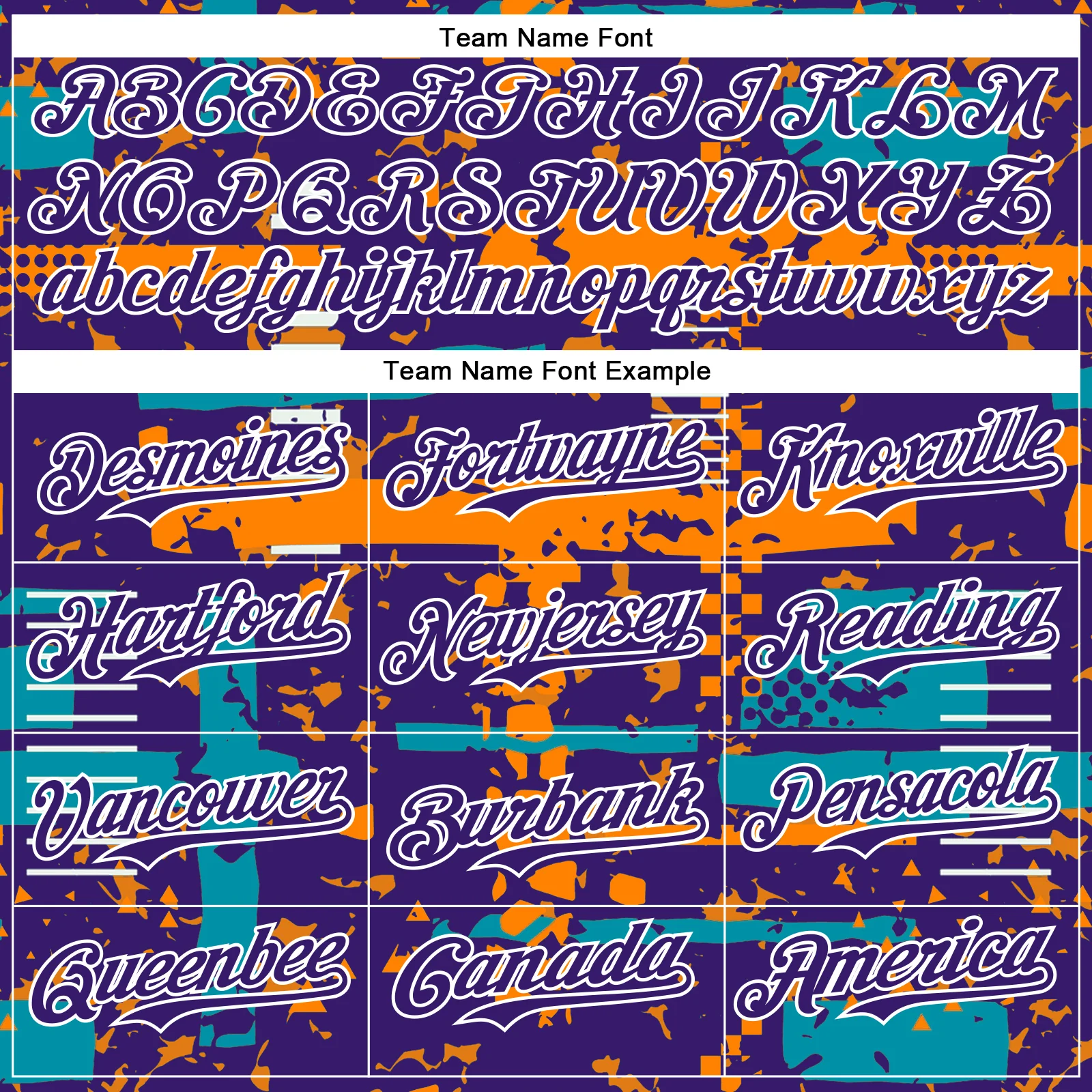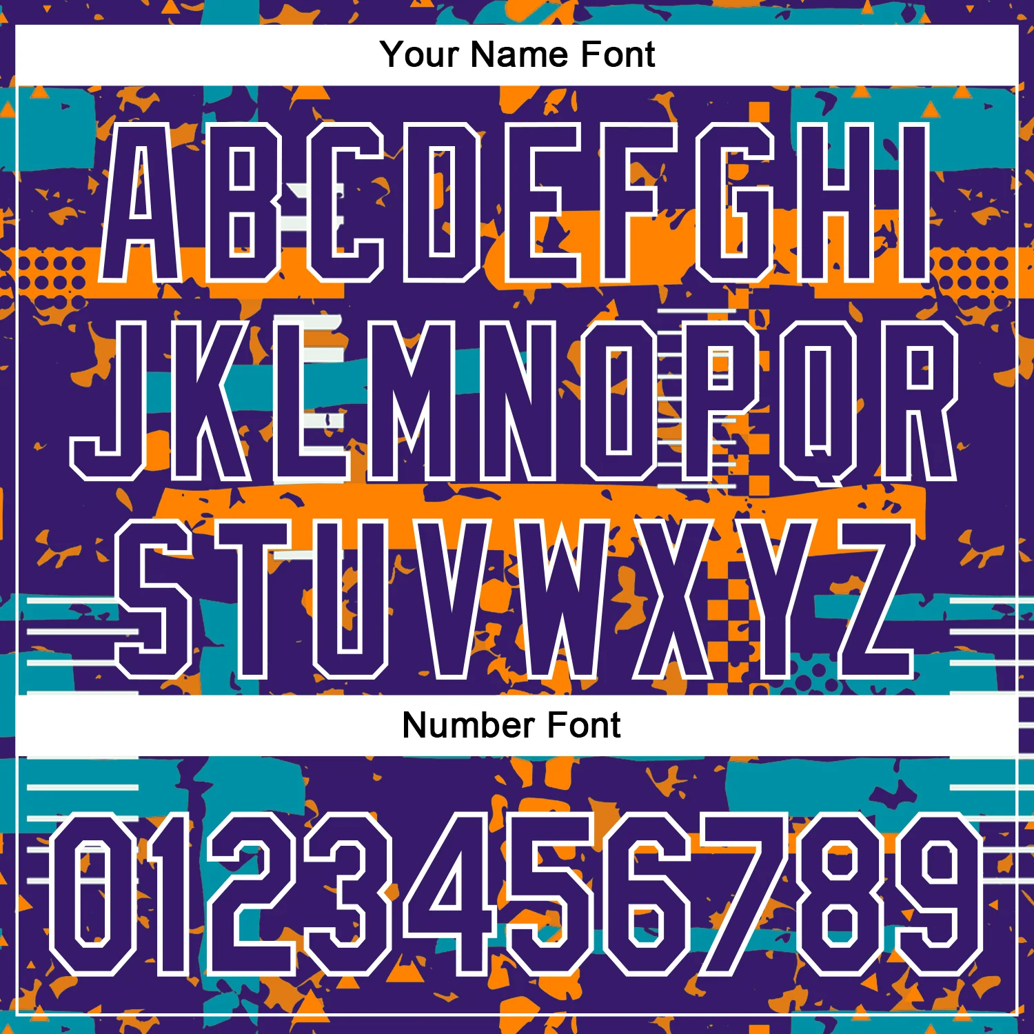 Custom Purple Teal Bay Orange-White Abstract Fragment Shape 3D Pattern Design Bomber Full-Snap Varsity Letterman Hoodie Jacket