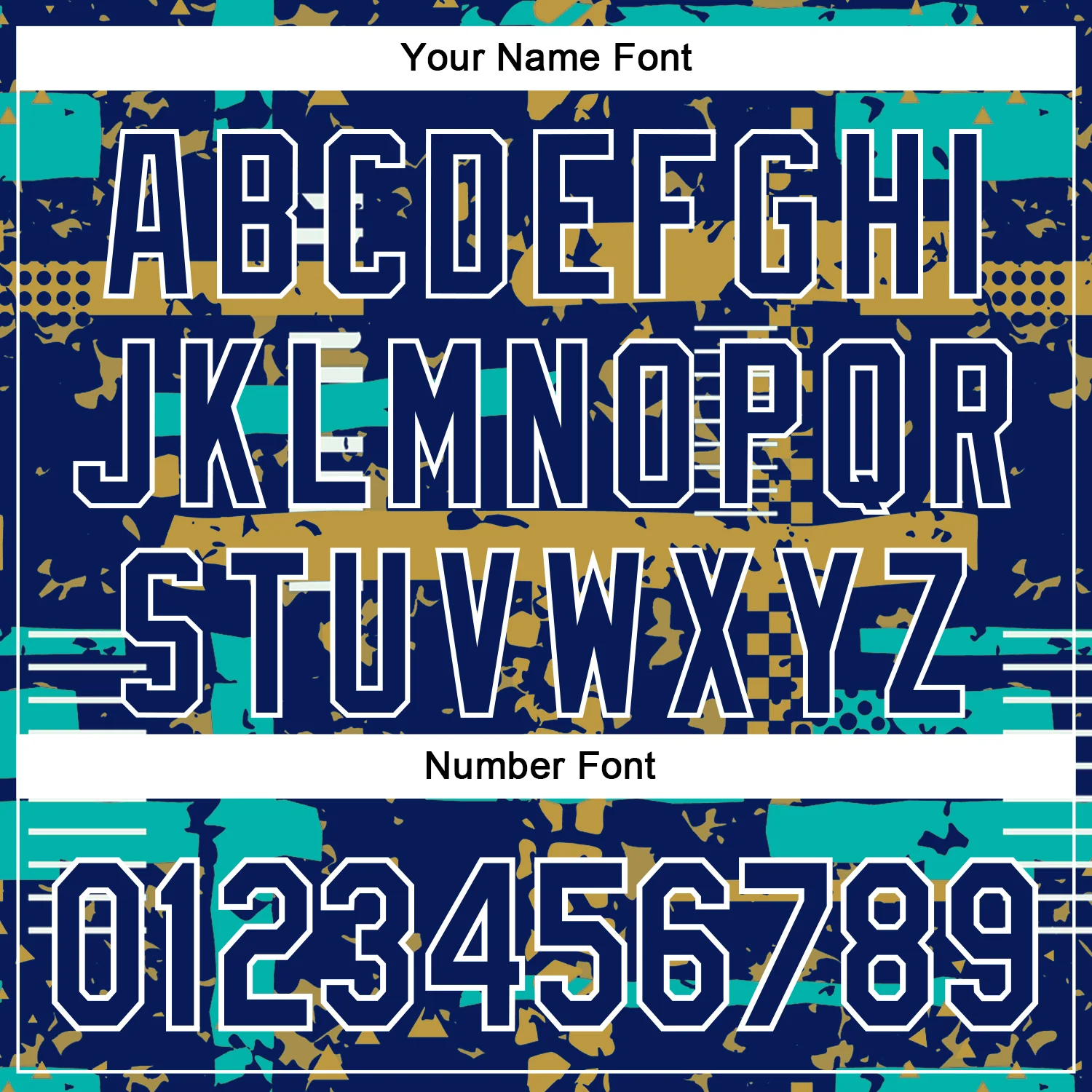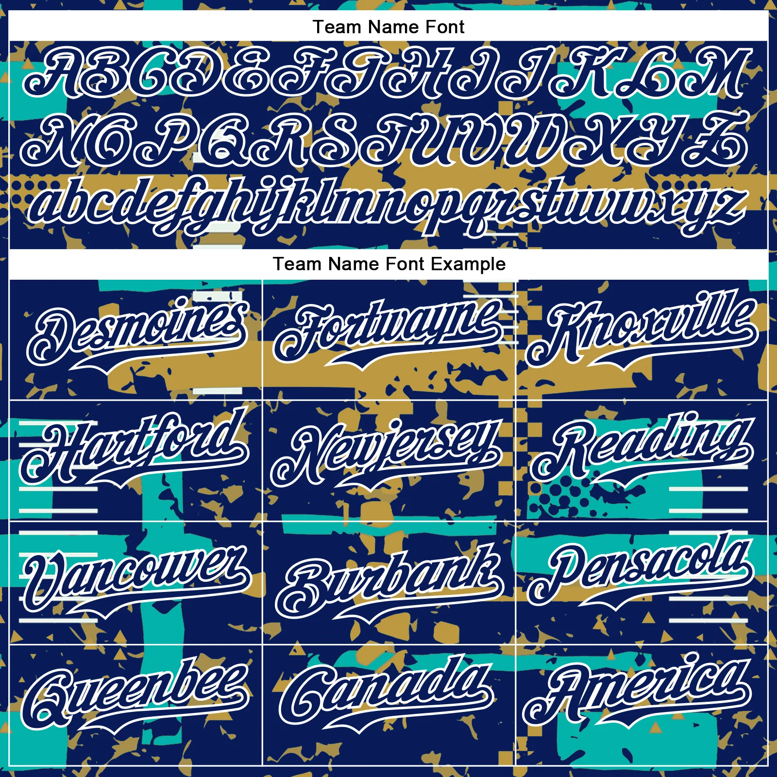 Custom Royal Aqua Old Gold-White Abstract Fragment Shape 3D Pattern Design Bomber Full-Snap Varsity Letterman Hoodie Jacket