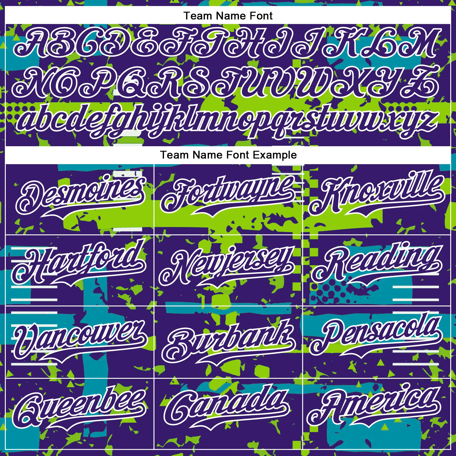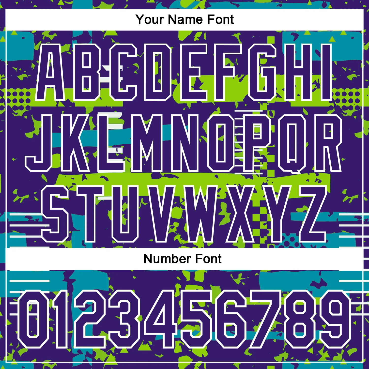 Custom Purple Teal Neon Green-White Abstract Fragment Shape 3D Pattern Design Bomber Full-Snap Varsity Letterman Hoodie Jacket