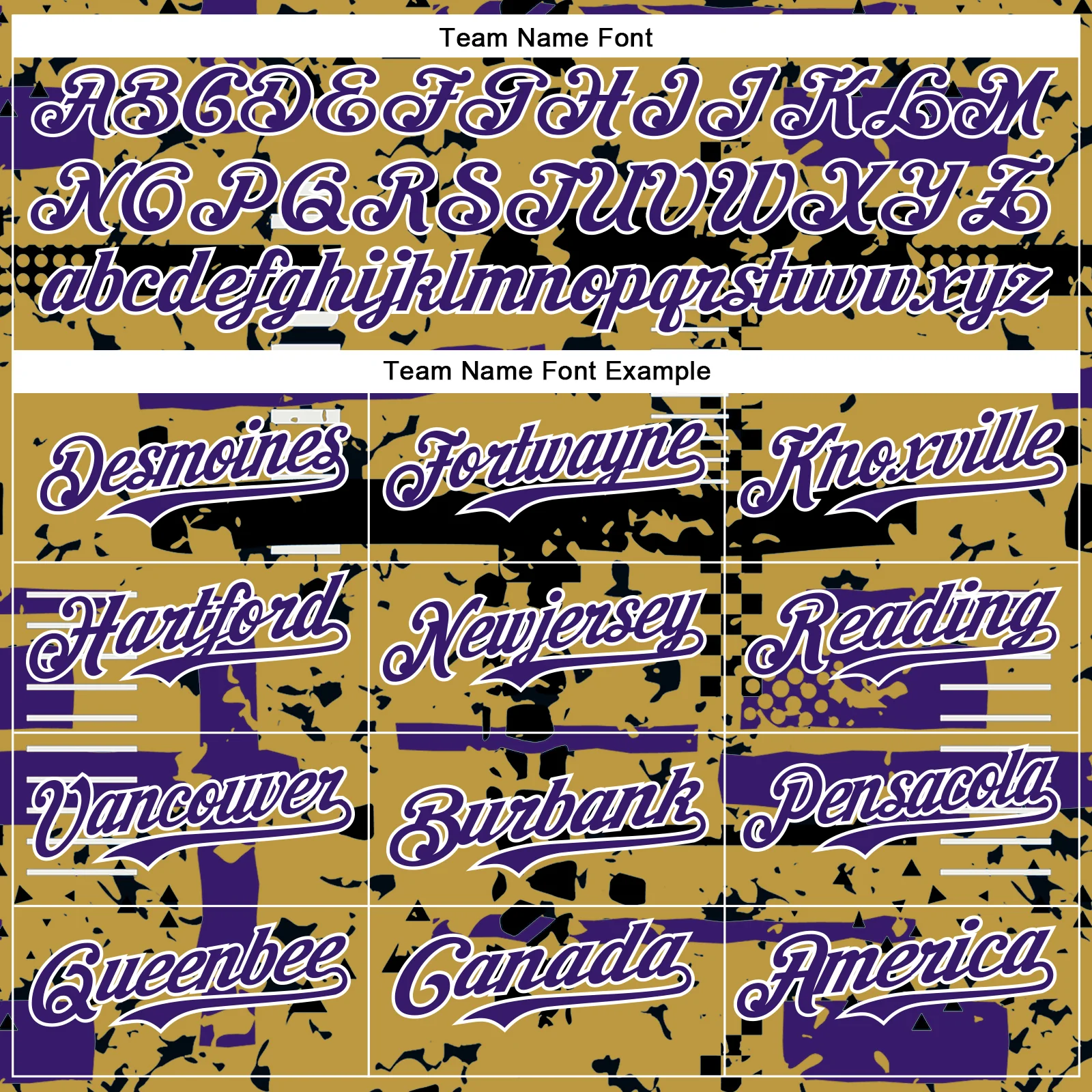 Custom Old Gold Purple Black-White Abstract Fragment Shape 3D Pattern Design Bomber Full-Snap Varsity Letterman Hoodie Jacket