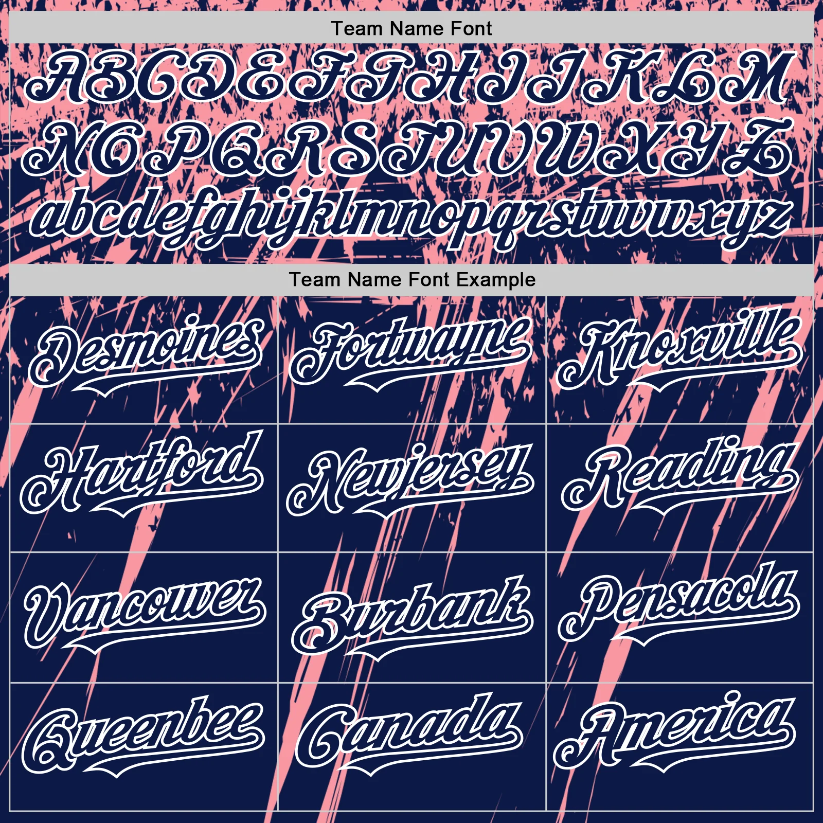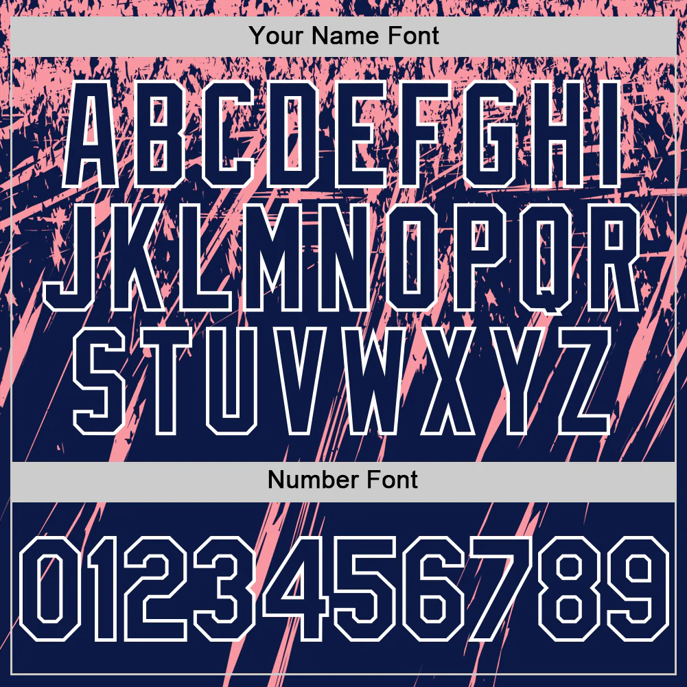 Custom Navy Medium Pink-White Splash 3D Pattern Design Bomber Full-Snap Varsity Letterman Hoodie Jacket