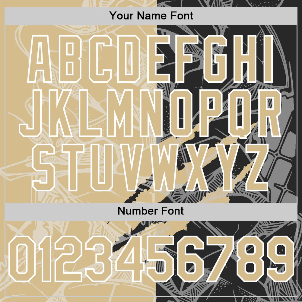 Custom Graffiti Pattern Vegas Gold Black-White Scratch Bomber Full-Snap Varsity Letterman Hoodie Jacket