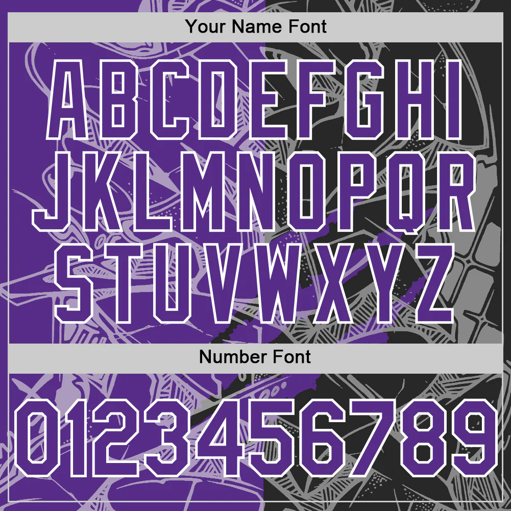Custom Graffiti Pattern Purple Black-White Scratch Bomber Full-Snap Varsity Letterman Hoodie Jacket