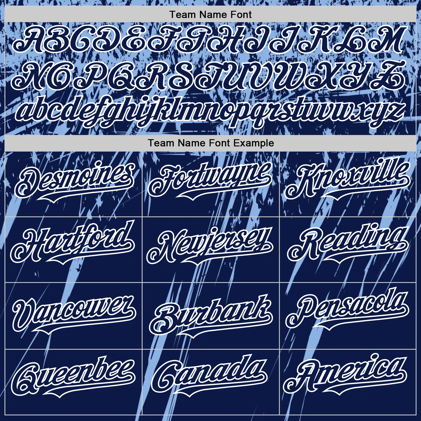 Custom Navy Light Blue-White Splash 3D Pattern Design Bomber Full-Snap Varsity Letterman Hoodie Jacket