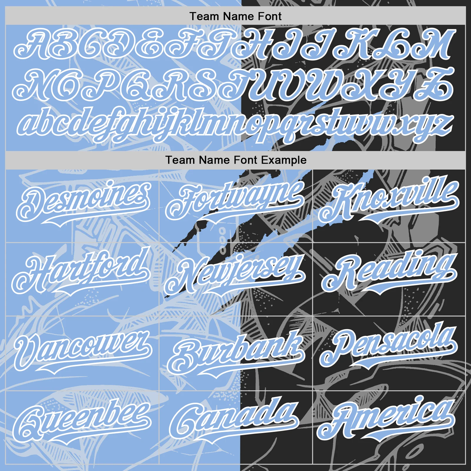 Custom Graffiti Pattern Light Blue Black-White Scratch Bomber Full-Snap Varsity Letterman Hoodie Jacket
