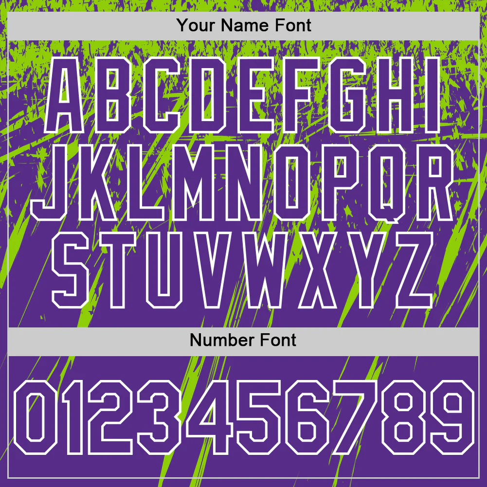 Custom Purple Neon Green-White Splash 3D Pattern Design Bomber Full-Snap Varsity Letterman Hoodie Jacket