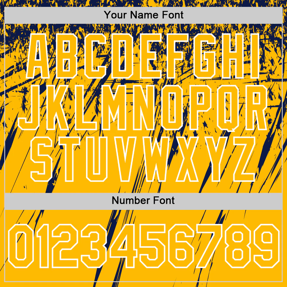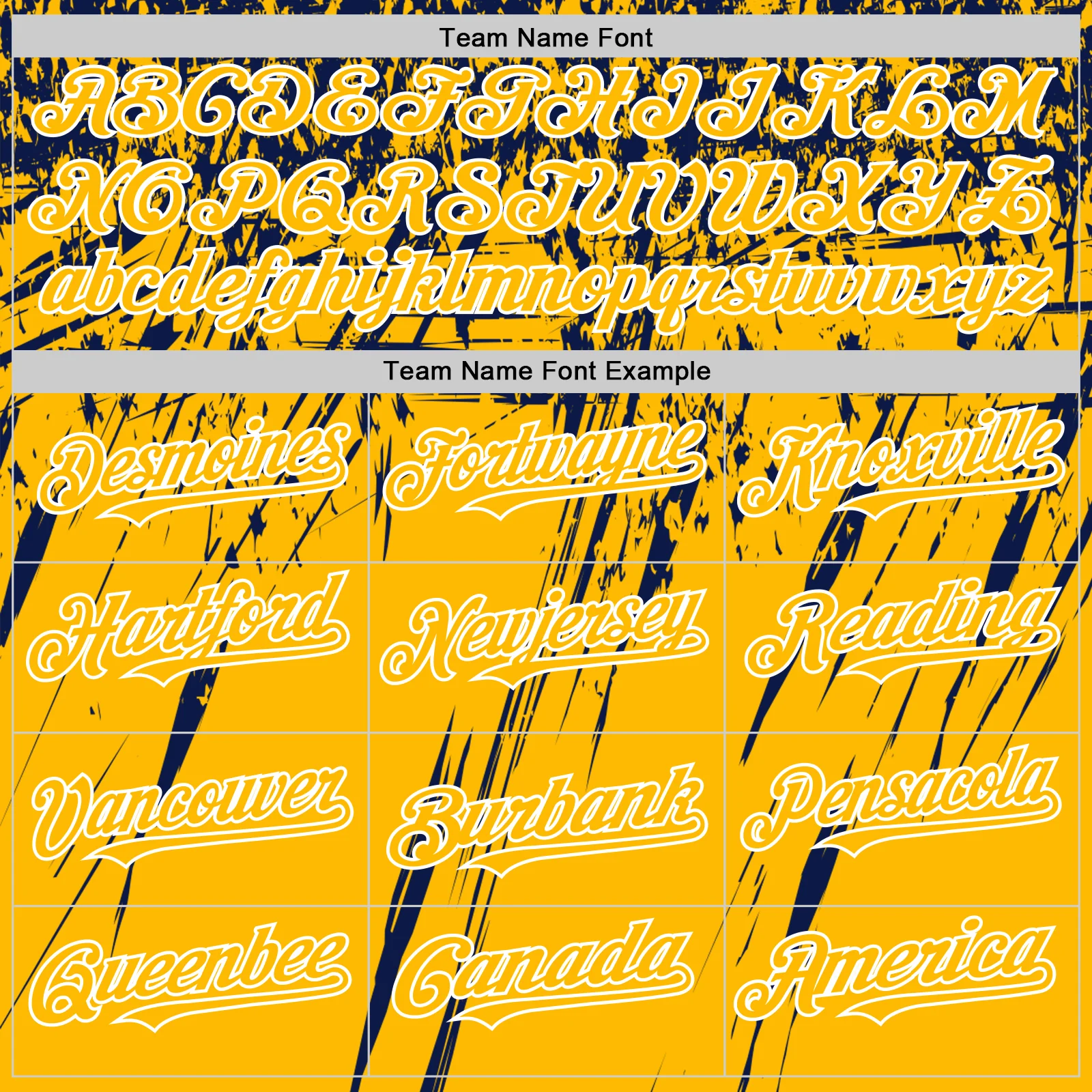 Custom Gold Navy-White Splash 3D Pattern Design Bomber Full-Snap Varsity Letterman Hoodie Jacket