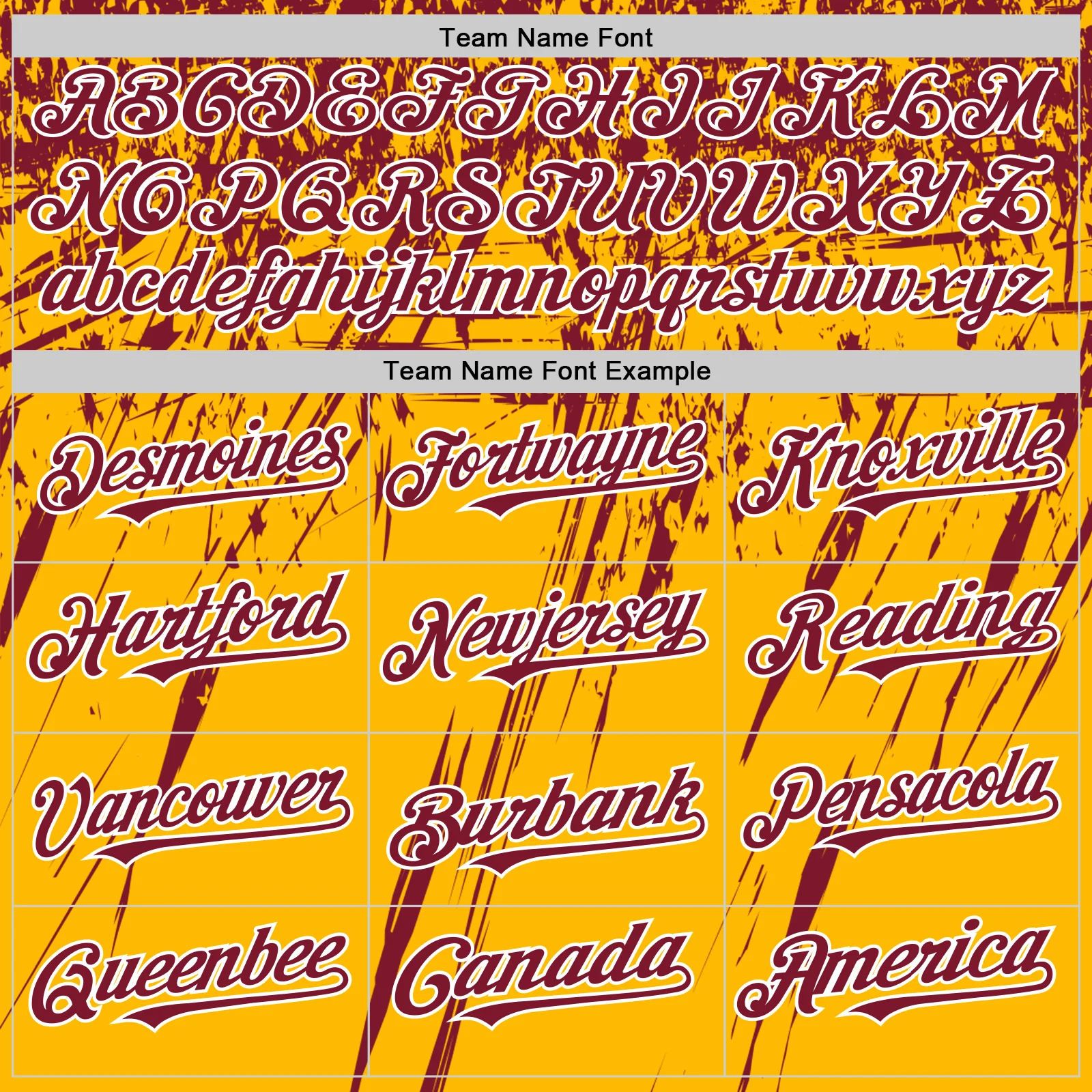 Custom Gold Crimson-White Splash 3D Pattern Design Bomber Full-Snap Varsity Letterman Hoodie Jacket