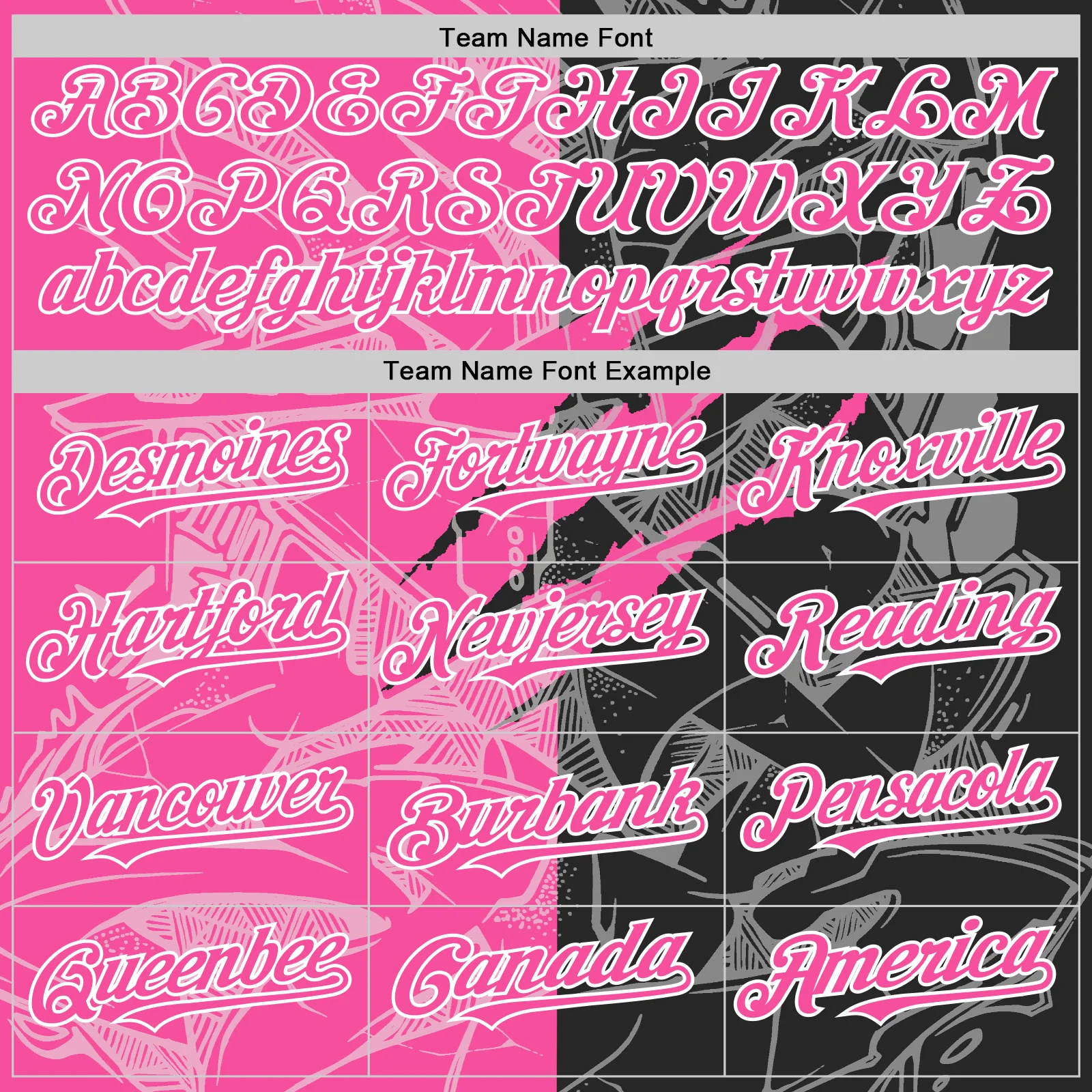 Custom Graffiti Pattern Pink Black-White Scratch Bomber Full-Snap Varsity Letterman Hoodie Jacket