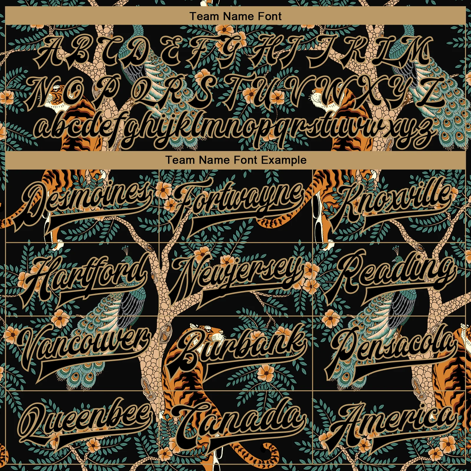 Custom Black Black-Old Gold Tiger And Peacock 3D Pattern Design Bomber Full-Snap Varsity Letterman Jacket