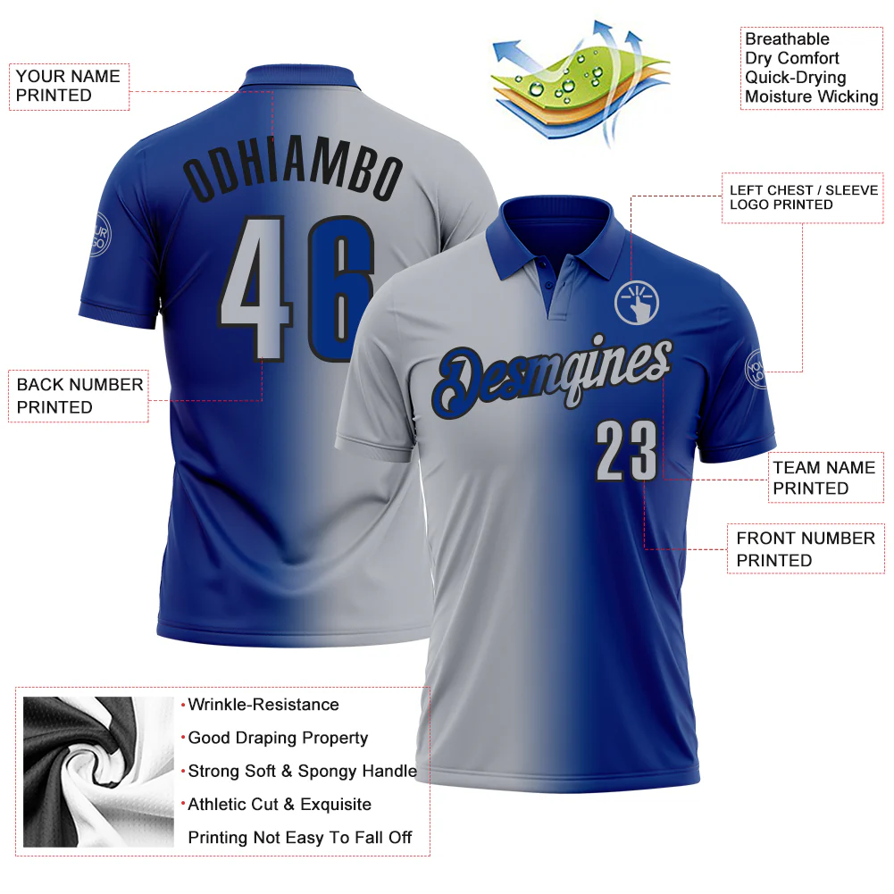 Custom Royal Gray-Black 3D Gradient Fashion Performance Polo Shirt