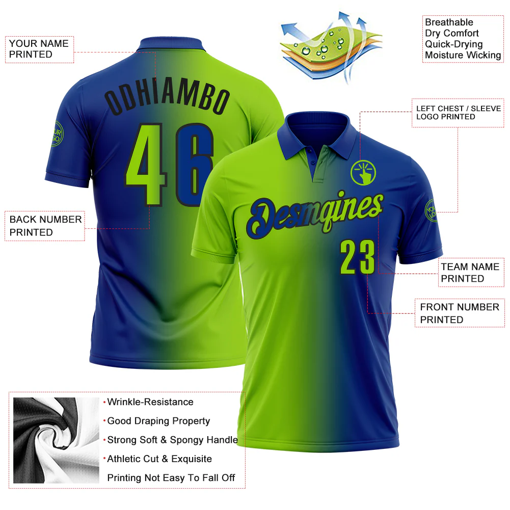 Custom Royal Neon Green-Black 3D Gradient Fashion Performance Polo Shirt