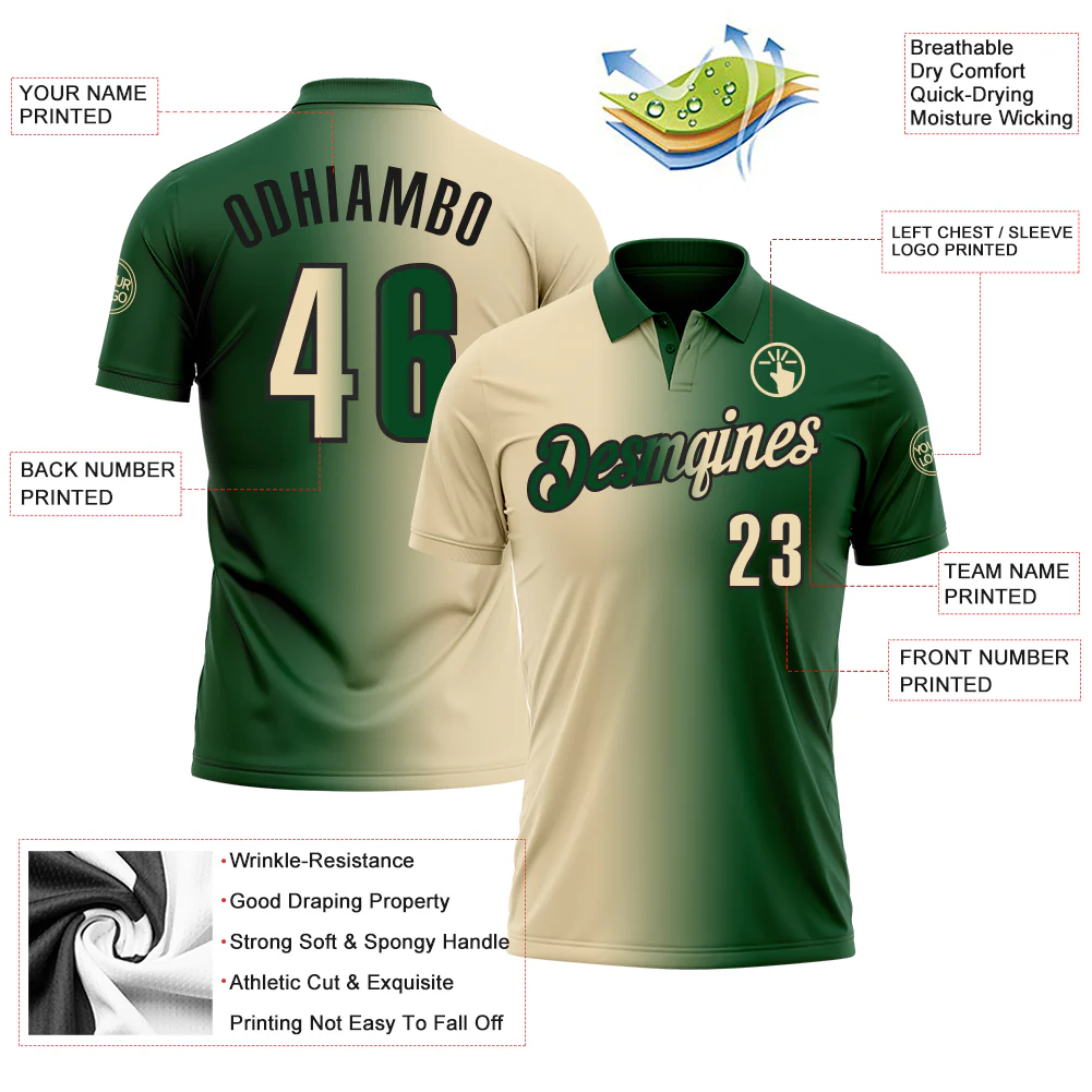 Custom Green Cream-Black 3D Gradient Fashion Performance Polo Shirt